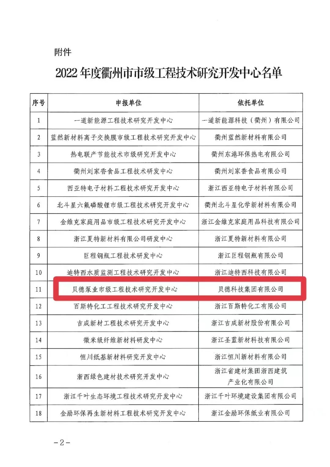 此次獲批市級(jí)工程技術(shù)研發(fā)開(kāi)發(fā)中心,為貝德科技集團(tuán)進(jìn)一步科技創(chuàng)新、高質(zhì)量發(fā)展蓄勢(shì)注能,也為貝德泵業(yè)工程技術(shù)研發(fā)中心申請(qǐng)浙江省研發(fā)中心打下基石。