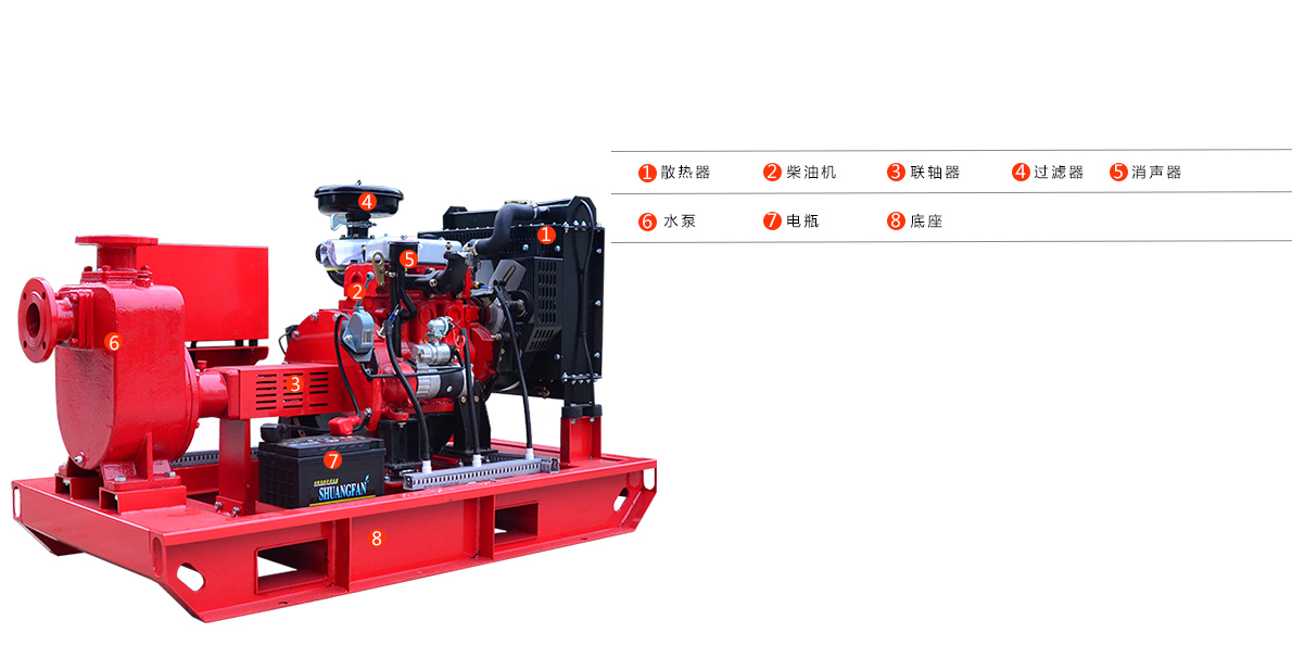 柴油機自吸泵,柴油機自吸消防泵,柴油機消防泵的結構類型很多,其中,外混式另一方面,被葉輪排到氣水分離室中的水又經左右回水孔流回到葉輪外緣。