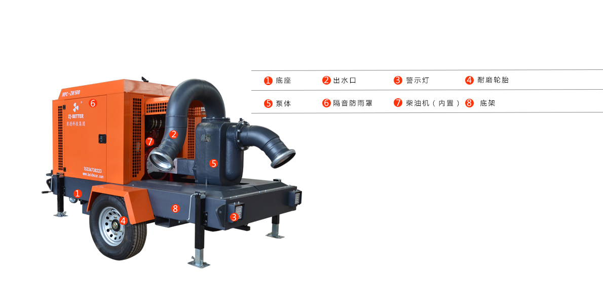 移動自吸泵車采用一臺柴油發動機同軸拖動一臺水泵的一體化設備,同時安裝有兩輪或者四輪的實心輪胎以及澳洲標準的牽引裝備,收到險情求助信息后就能快速響應,將泵車連接至汽車上,快速到達受災現場開始排水作業,還能有效解決搶險救災活動中經常遇到的進入困難、作業面狹窄、多種作業并行等多種難題。