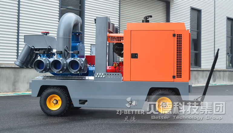 應急移動防汛泵車,是我公司根據多年的搶險經驗和廣大用戶的建議,經過多次技術改進后推出的最新產品,具有整車質量輕、抽水流量大、揚程高、越野性能好、機動性能好、牽引裝卸快捷、操作使用簡單、環境適應能力強等等特點,是現階段防汛抗旱的主力軍。防汛排澇移動泵車采用高端中外合資高品質柴油機發動機,通過船用高彈聯軸器直接驅動雙吸自吸式離心泵。配置最高時速可達50公里/時的高速全掛式牽引拖車,可輕松通過碎石路面,水泥路面,泥濘路面等惡劣環境。配用1變3分水頭,將大口徑的進出水管變成小口徑,并選用高強度輕質塑筋軟管,配備不銹鋼快速拆卸接頭,可降低操作人員數量及勞動強度,2-3人就可輕松操作。配備油潤滑式旋片式真空泵直接抽取泵內和進水管路內的空氣,泵內不需要再灌引水。